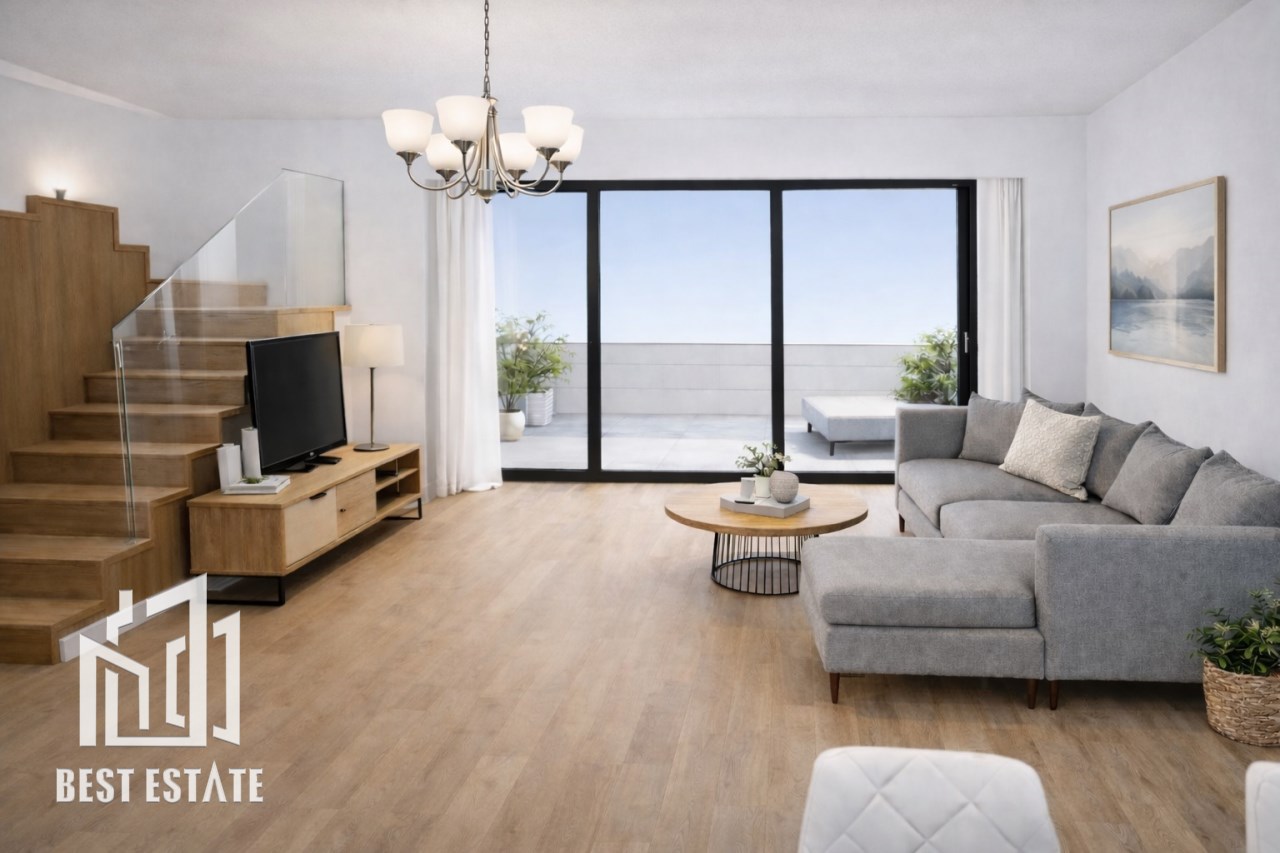 Pokój dzienny z jadalnią i wyjściem na prywatny ogród