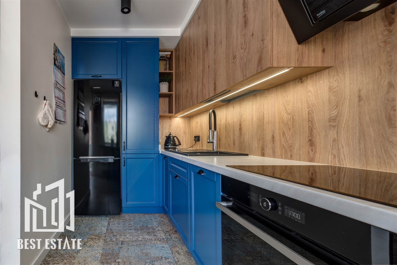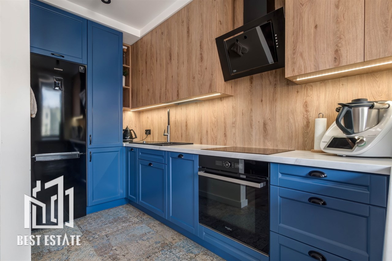 Kuchnia półotwarta – nowoczesna, w pełni wyposażona w niezbędną zabudowę, gotowa na kulinarne eksperymenty.