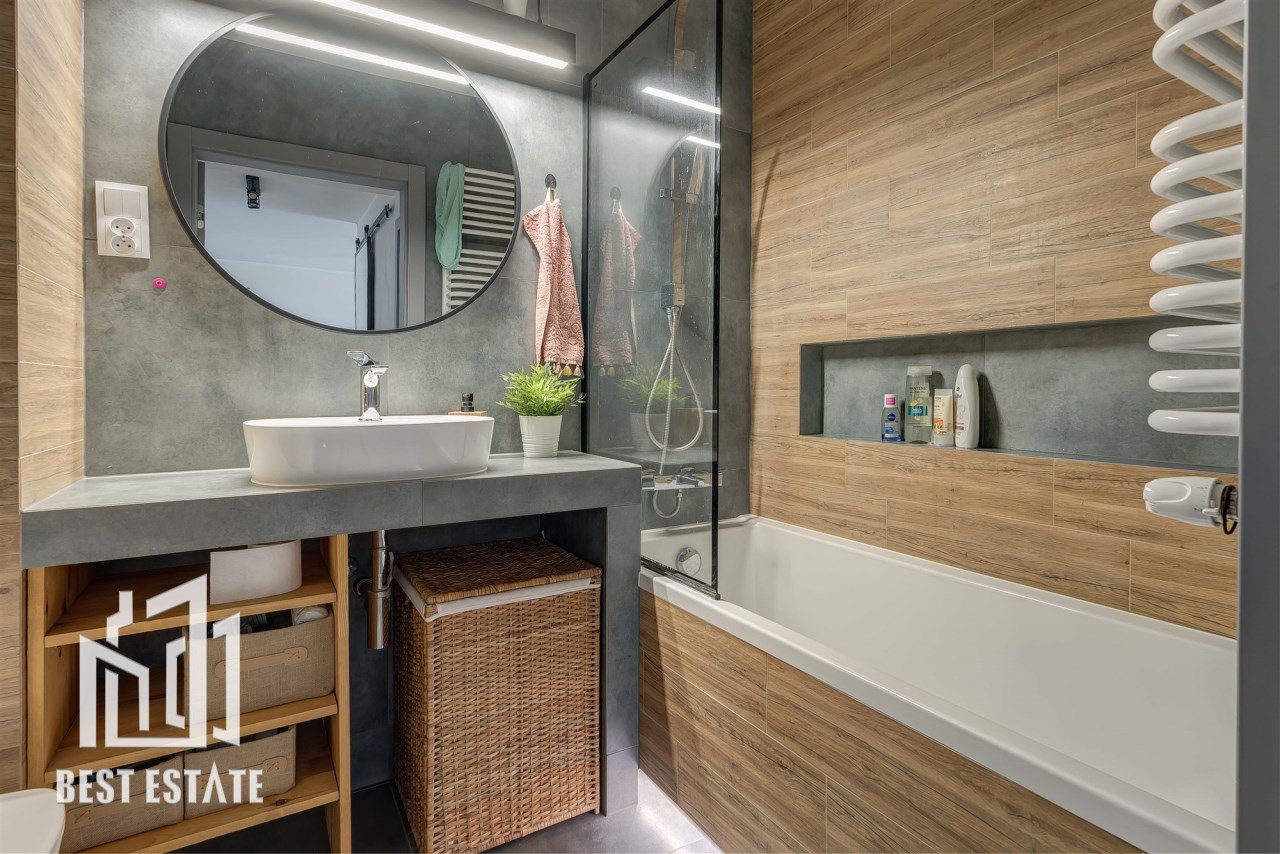Łazienka – elegancko urządzona, z wanną i prysznicem, gwarantująca pełen komfort.