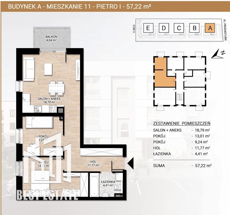 | Powierzchnia użytkowa [m2] | 57,22 m² |