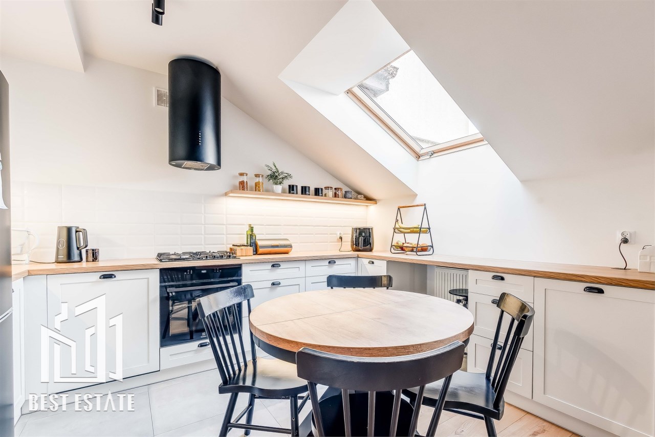 Mieszkanie jasne i wygodne: naturalne światło wpada przez okna, a skos w kuchni — taki urok — obecny, ale nieuciążliwy. Dodatkową korzyścią jest to, że ze względu na skos do czynszu liczona jest nieco mniejsza powierzchnia — mniejszy koszt, ta sama wygoda.