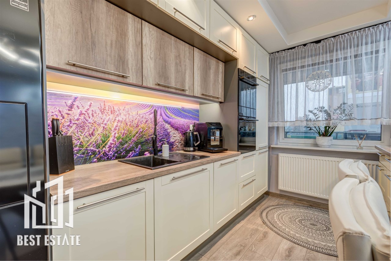 W cenie pozostają zabudowy stałe, w tym nowoczesna kuchnia ze sprzętem AGD oraz zabudowy w garderobie i łazience. Całość utrzymana w stonowanej, ponadczasowej kolorystyce, gotowa do wprowadzenia bez dodatkowych nakładów.
